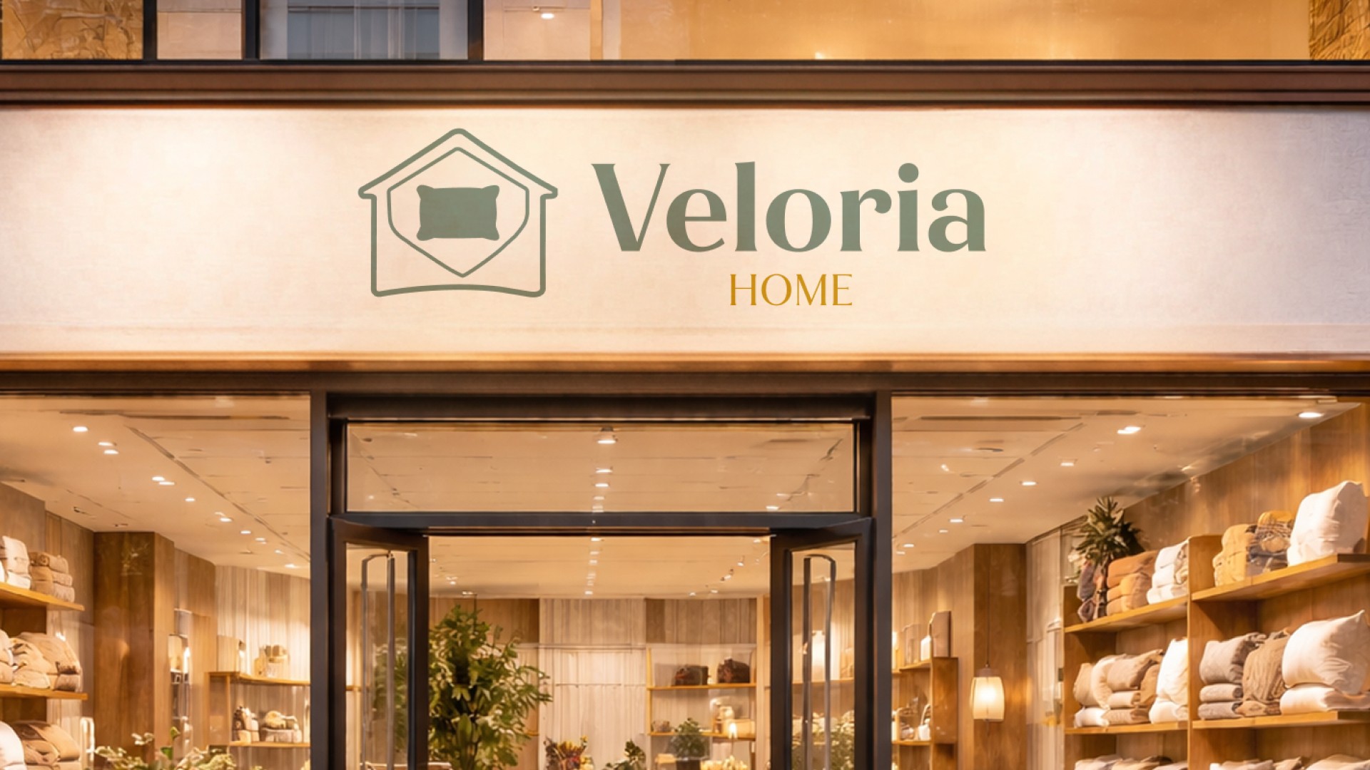 Veloria Home’s brand transformed from lifeless to engaging. The house-shaped logo positions them clearly within home retail, the pillow and “V” reinforce comfort and identity, and the palette and typography create warmth, trust, and balance.