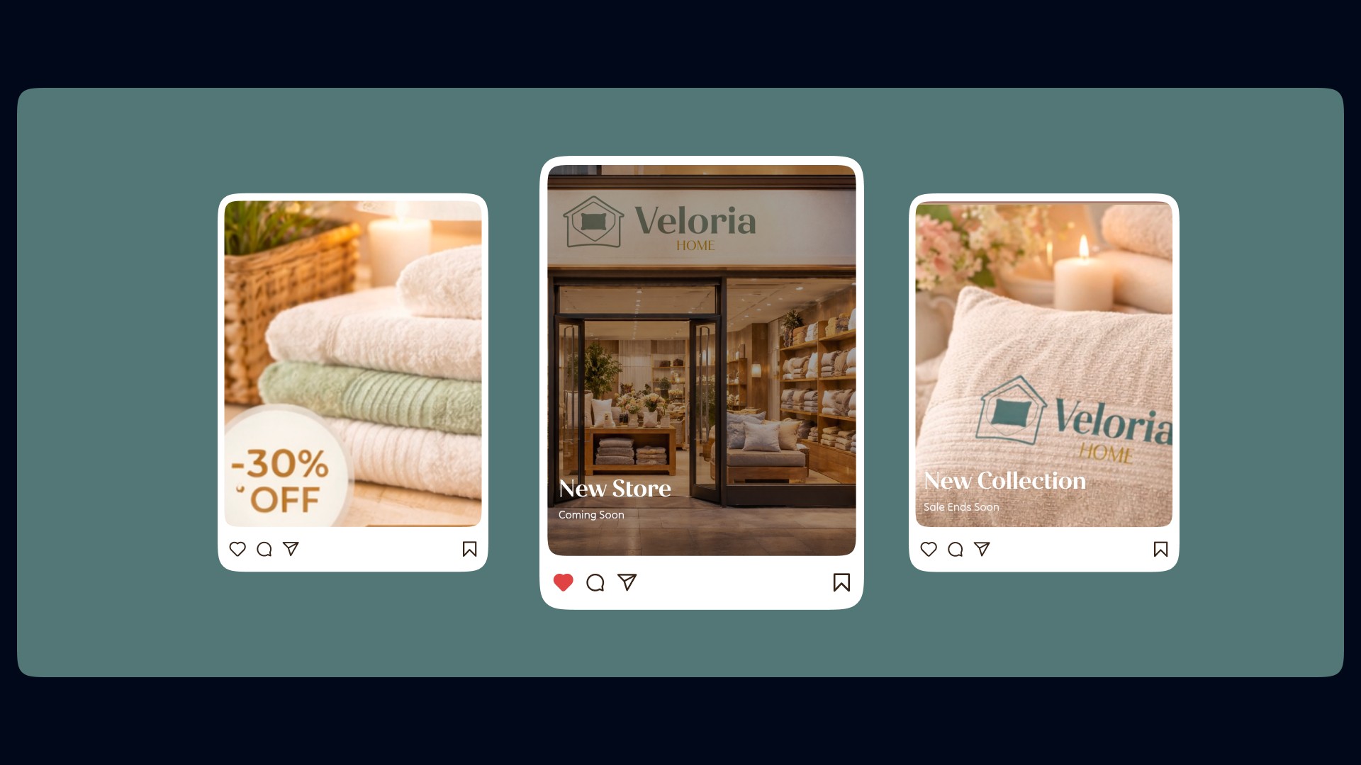 Tone of voice mirrors the visuals: warm, clear, and confident. Messaging guides customers simply and practically, making home styling stress-free and approachable. Now, Veloria Home feels like a real, grounded brand, inviting customers to feel at home while shopping boosting trust, engagement, and recognition.